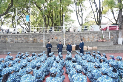 2025年10月23日,欧美无码 ·(中国 )官方平台 党委书记王慷慨、党委副书记冯虹一行来到麓南校区篮球场,亲切慰问了带训教官、2025级本科新生,为他们送上温暖关怀,学工办相关辅导员及学生干部代表参加。
