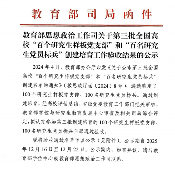 第三批全国高校“百个欧美无码样板党支部”验收通过名单