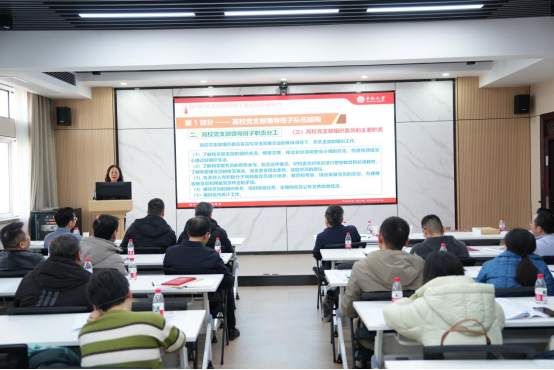 在述职评议环节,教工党支部书记按照抽签顺序,依次进行现场述职,围绕年度履职情况、支部建设成效、品牌活动创建思路、存在问题及下一步思路进行了全面汇报。每位教工支部书记述职后,联系该支部的党委委员随即进行“一述一评”,既实事求是肯定成绩,也直指问题不足,并提出具体希望和要求。学生党支部书记采取书面形式述职,与会人员结合述职报告和日常了解,对各支部书记履职情况进行了现场测评。