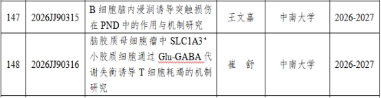 近日,2026年度湖南省自然科学基金青年学生基础研究项目立项名单正式公布,我院周勇教授指导的王文嘉同学所申报项目《B细胞脑内浸润诱导突触损伤在PND中的作用与机制研究》,以及武明花教授指导的崔舒同学所申报项目《脑胶质母细胞瘤中SLCIA3+小胶质细胞通过Glu-GABA代谢失衡诱导T细胞耗竭的机制研究》成功立项。欧美无码 在本科生科研能力培养方面成效显著。
